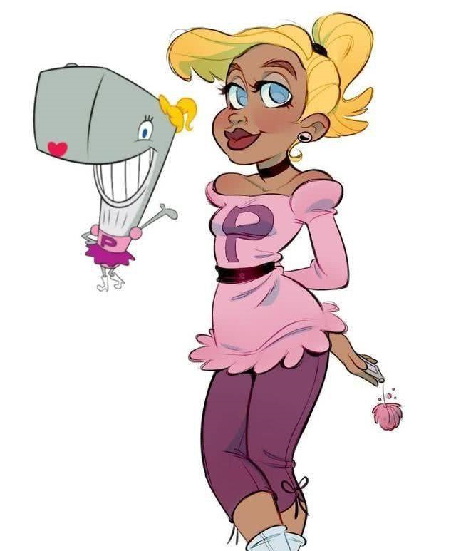 痞老板是蟹老板的死对头,一位反派人物,只有一只眼睛的痞老板在变化后,用眼罩把一只眼睛遮起来真的非常适合。因为是邪恶的化身,痞老板看起来成了一位科学怪人,毕竟痞老板的老婆是凯伦。凯伦也不再单单是电脑,而是一位机器人,机器人与科学怪人的组合,真的非常邪恶又有爱。以上。