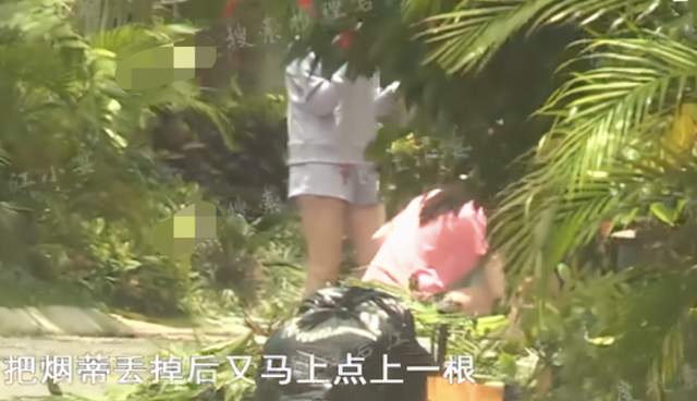 baby猛吸一口之后,把烟头扔到旁边的地面上,然后马上又点了一支,看来是不过瘾,烟瘾相当大。