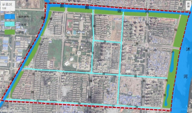 以往,新沂市第一中学周围道路每年一到雨季,雨水排不出去,内涝严重。2020年,新沂市住建局以解决“场地有内涝、雨污管混接、排水不生态、景观品质差”为突破口,优先利用绿色海绵设施进行雨水滞蓄,让水绿景观与海绵功能设施有机结合,并与泛水环水系连通,打造城市泛水环核心节点。共完成临沭南路、臧圩东路等市政道路海绵改造13条,消除易淹易涝片区10余处,使群众切身感受到海绵城市建设带来的好处。