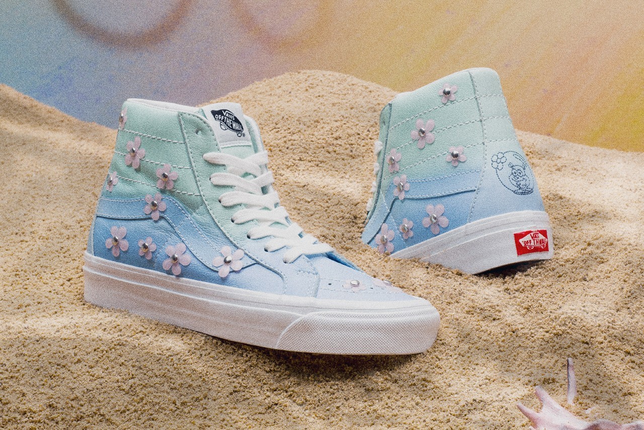 此次 Vans x Sandy Liang x 海绵宝宝三方联名鞋款以 Vans Sk8-Hi 38 DX 为原型,共带来两款配色。