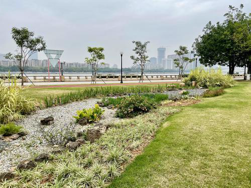 阅江路碧道的雨水花园 通讯员供图在完善顶层设计方面,广州市海绵办一是完善法规规章,二是完善规划体系,三是完善标准体系,四是打造示范典型。此外,为了落实运维管养,广州市将于2021年底前开展海绵城市建设设施维护管养机制研究,于2022年底前制定广州市海绵城市建设设施运维制度。