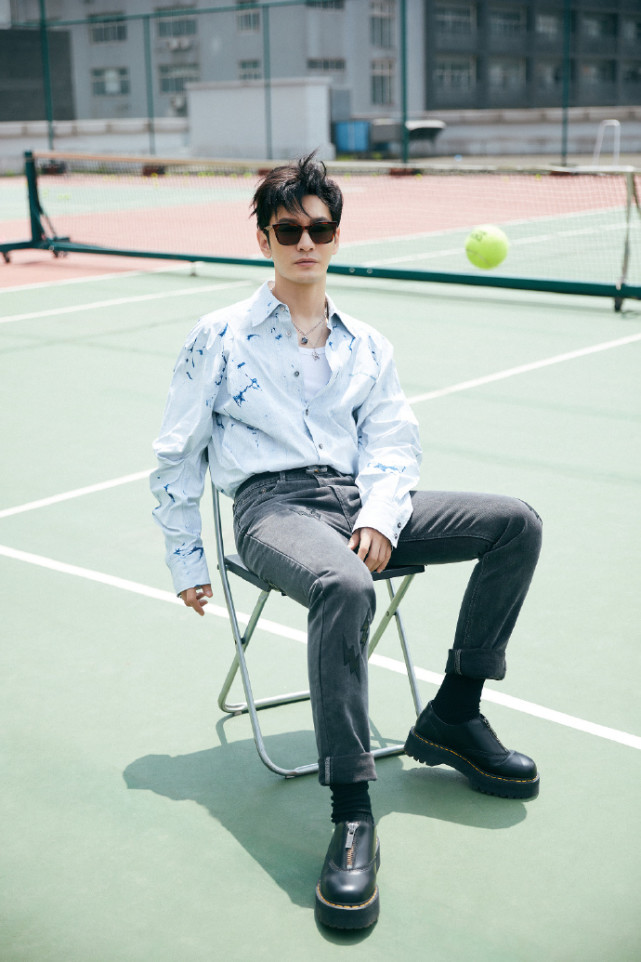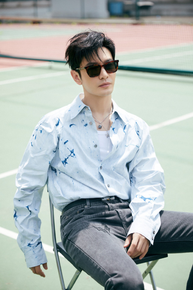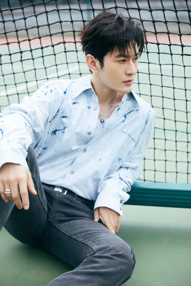 画面中的黄晓明身穿泼墨浅蓝色衬衫,内搭白色的背心,再穿上印有闪电的深色牛仔裤,一身造型也显得十分的帅气。瘦身成功的黄晓明,锁骨也若隐若现的,而修长的天鹅颈更是十分的抢镜。