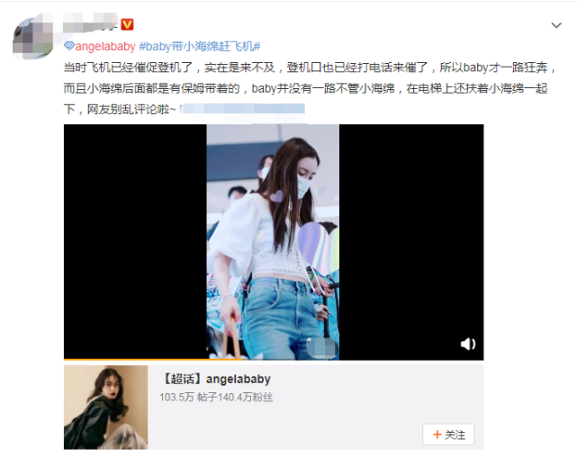 当时画面曝光时,Angelababy也遭到了不少网友的吐槽,称她不顾及小海绵的安全,随后有粉丝也分享了一段Angelababy牵着小海绵下电梯的视频,并解释了其中的缘由。